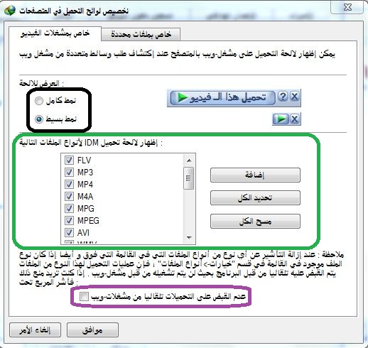 2. إضافة أو حذف أنواع الملفات التي يظهر فيها لوائح التحميل